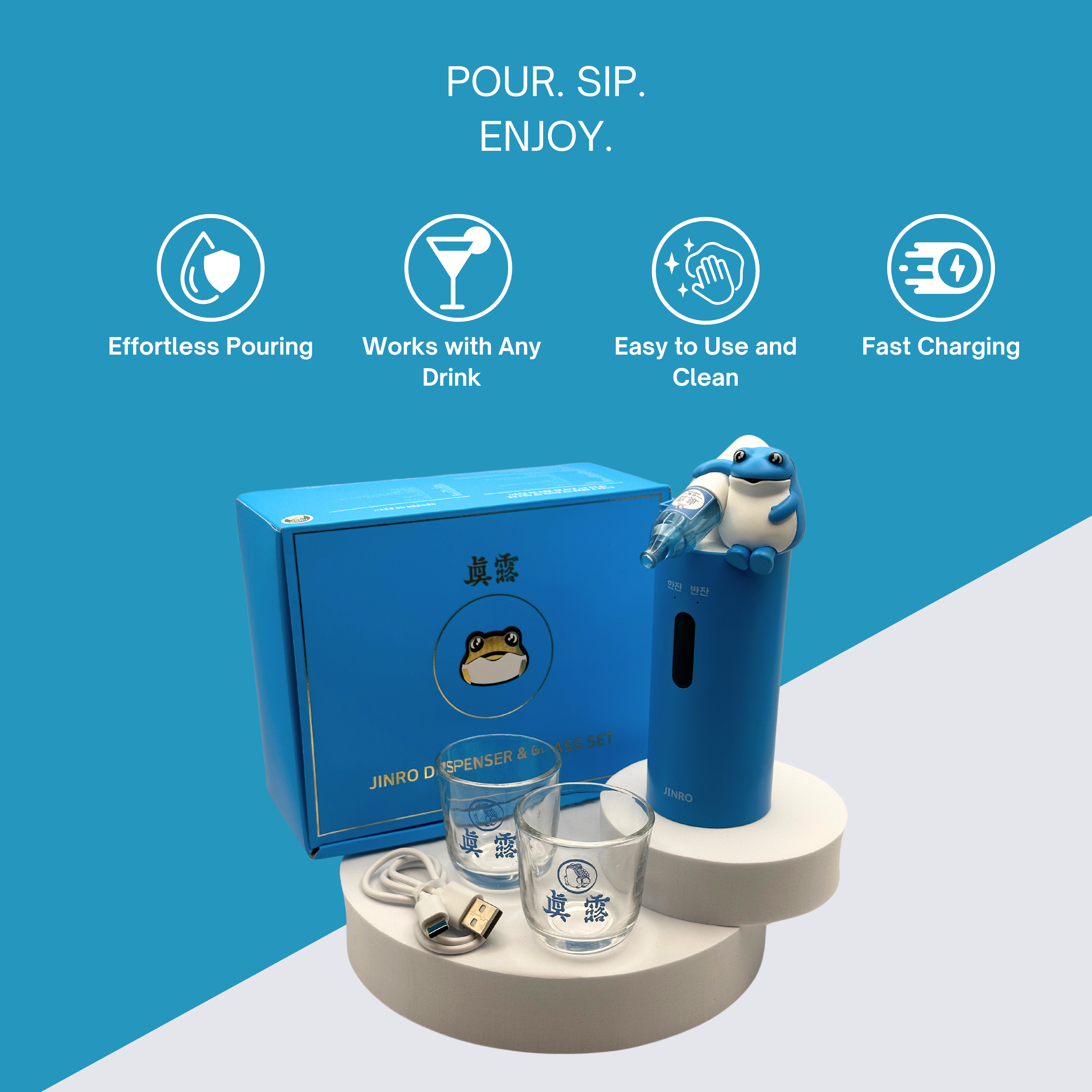 Make every pour perfect with this USB-rechargeable soju dispenser. The ultimate party essential for effortless drinks!
