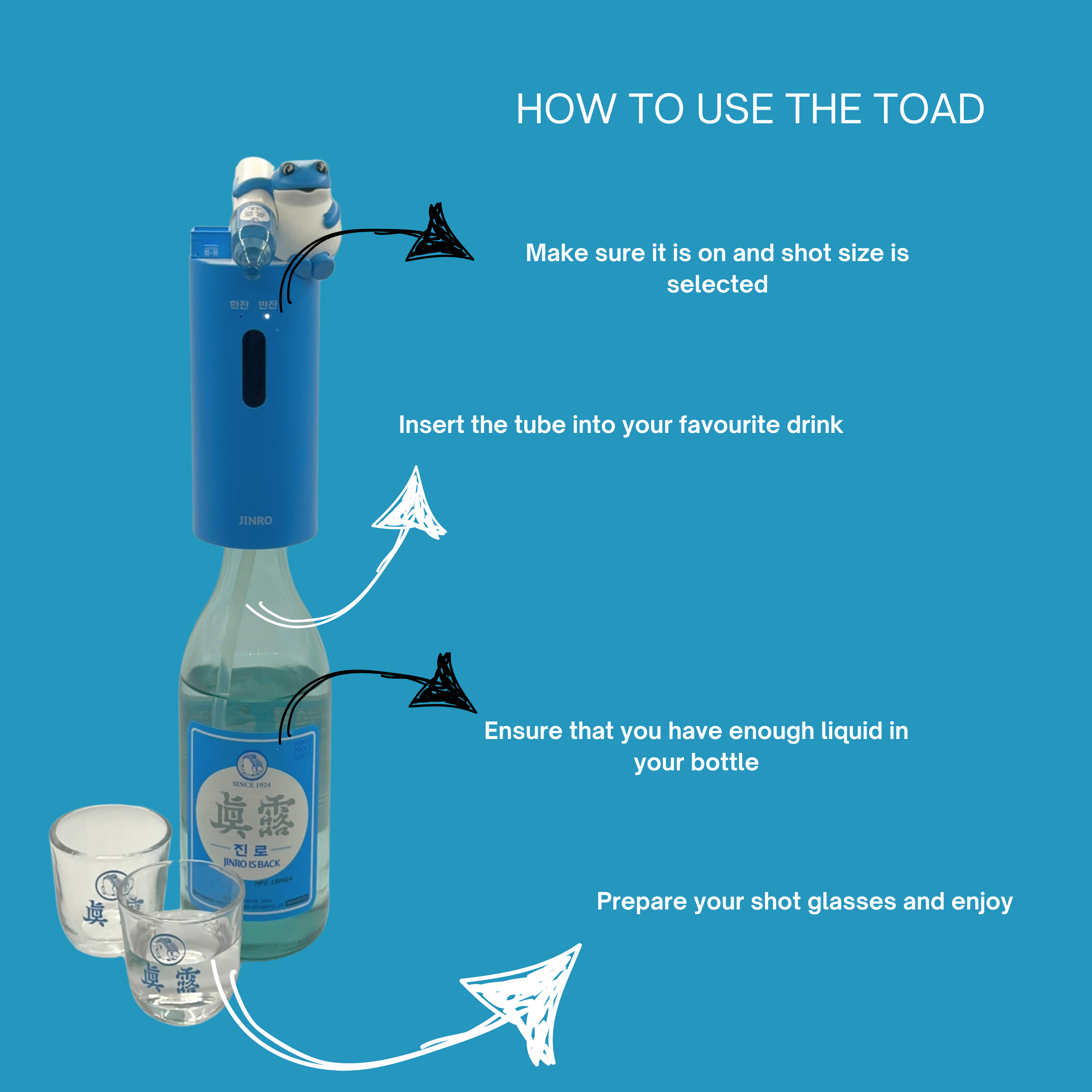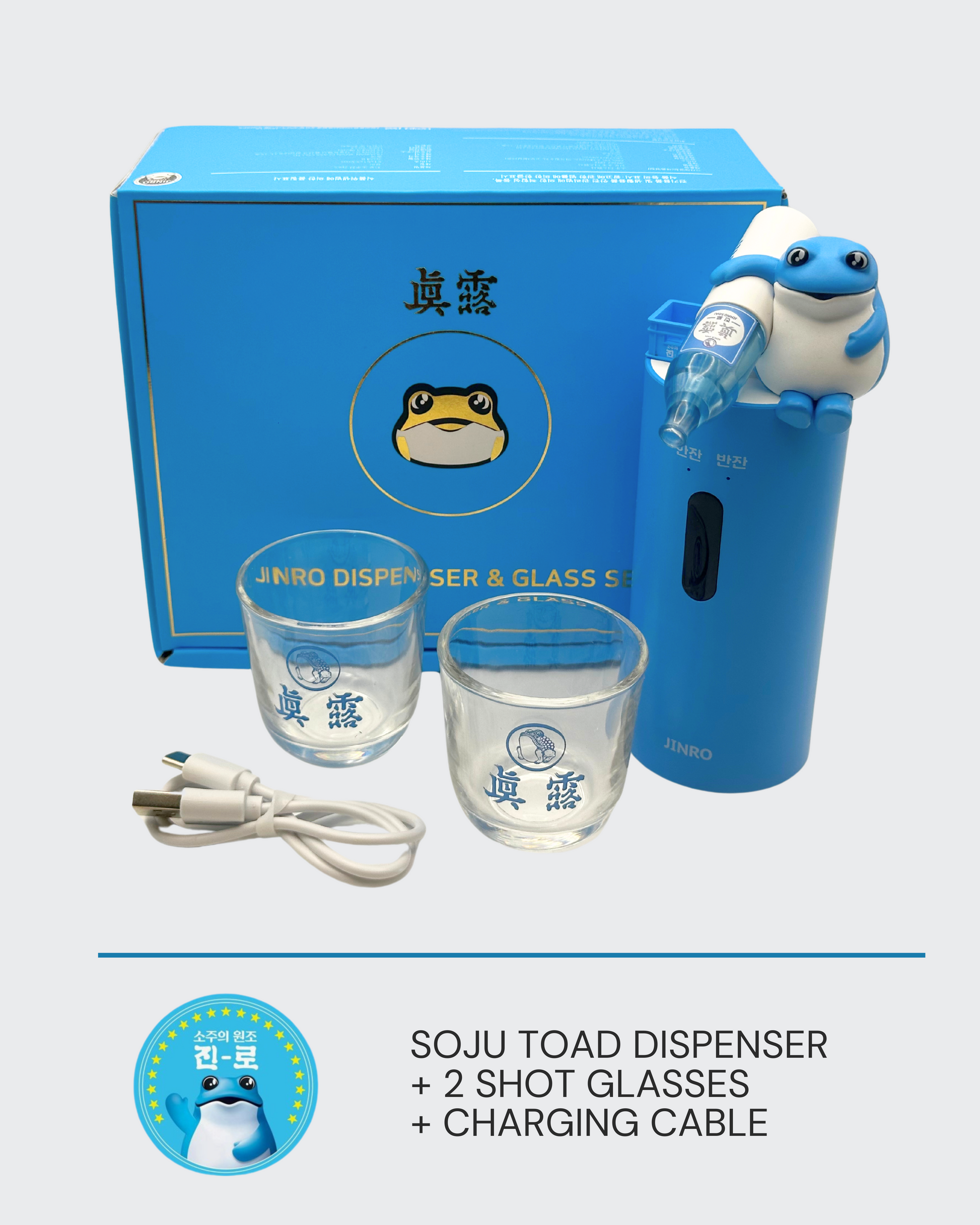 Soju Toad Dispenser | Complete Set with 2 Glasses & Charging cable (C-type)
